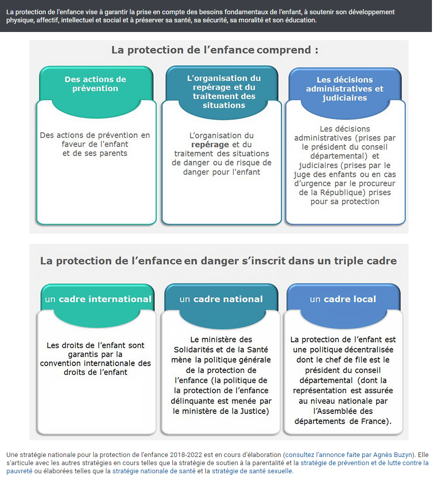 QU’EST-CE QUE LA PROTECTION DE L’ENFANCE ? (source: https://solidarites-sante.gouv.fr)